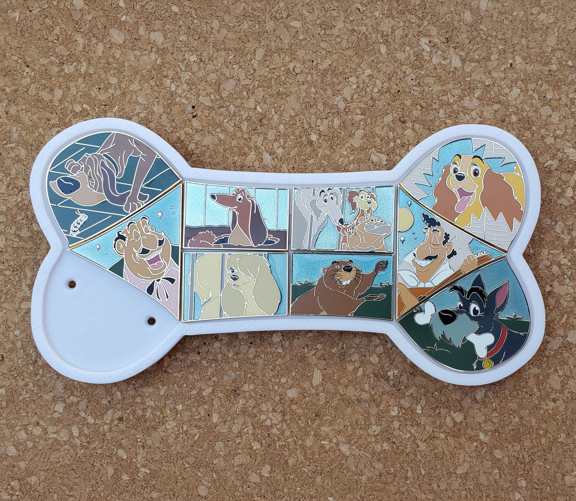 Celebrate the 70th anniversary of the beloved classic with this specially designed Bone Puzzle Frame, crafted to showcase the full commemorative pin puzzle set. Shaped like a dog bone to honor the film’s most iconic characters, this frame perfectly captures the heart and charm of the timeless story.