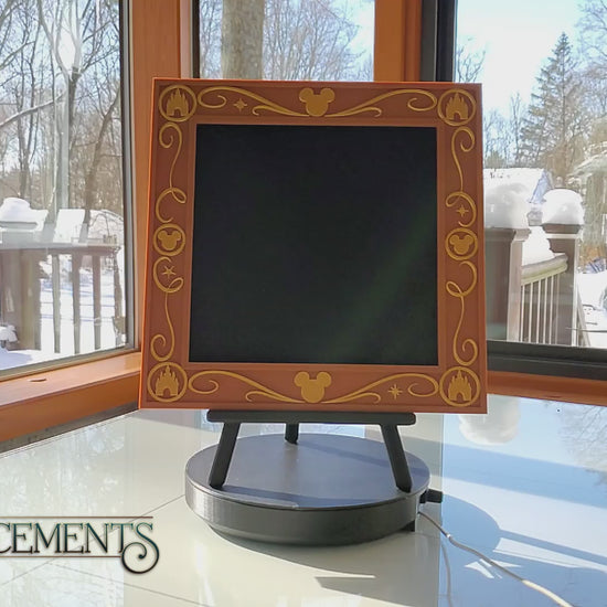 This isn't just a display; it's an enhancement. The frame features a stunning 3D-relief design, highlighting four majestic castles in the corners and crowned with the world’s most famous mouse. The elegant gold-toned filigree adds a layer of sophistication that complements any room decor.