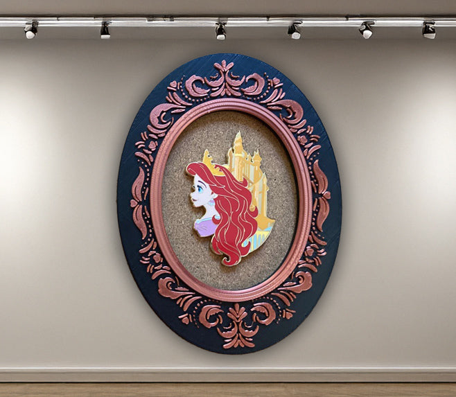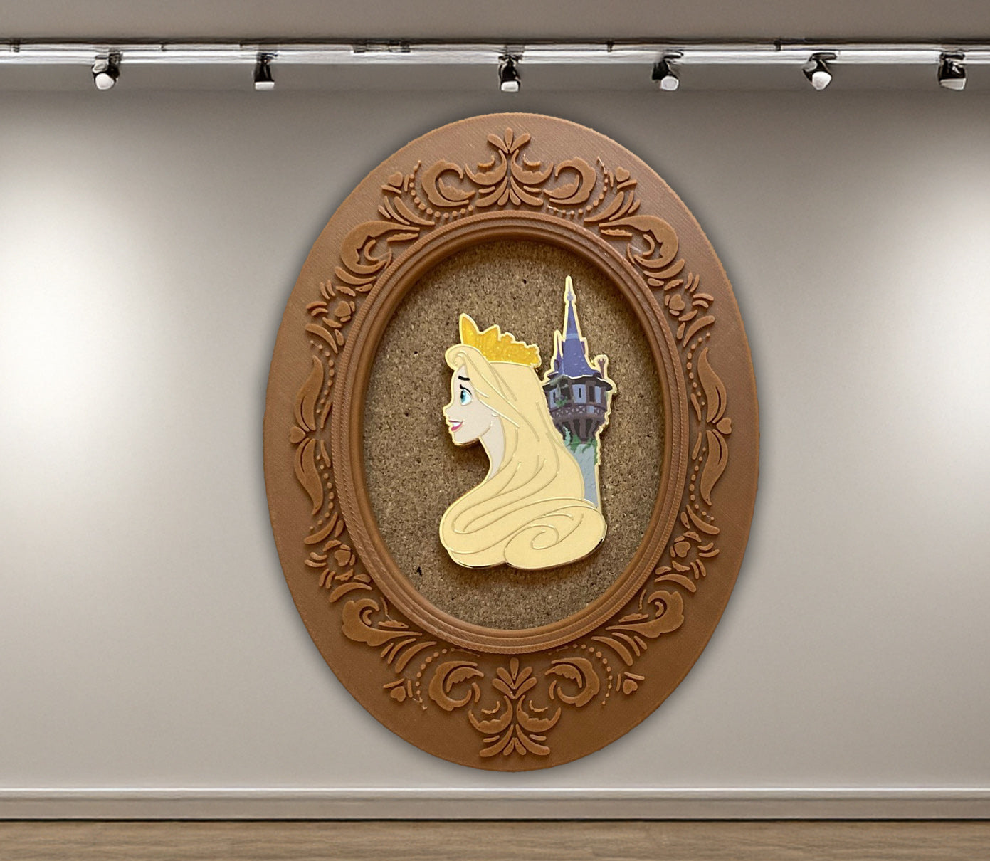 Give your favorite pin the spotlight it deserves with this enchanted oval portrait frame. The ornate scrollwork adds a touch of vintage grandeur. Perfect for princess pins, castle pins, or any centerpiece piece, this frame transforms your display into a fairytale gallery. A must-have for collectors who want to elevate their most prized pins into works of art.