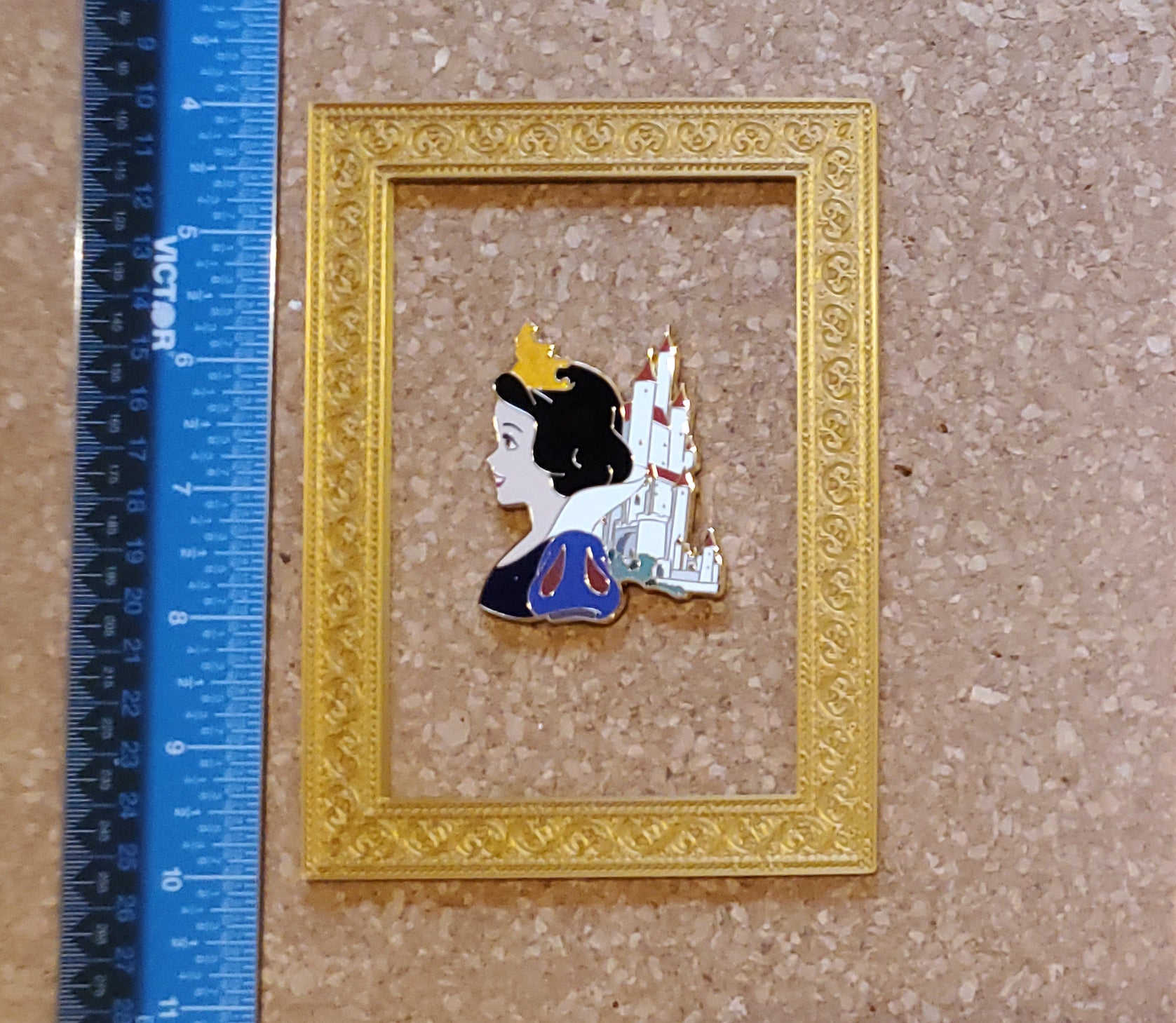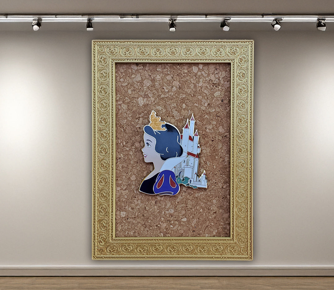 Bring a sense of timeless elegance to your collection with this classic portrait frame. The refined filigree border makes it feel like a piece pulled straight from a royal gallery. Designed to highlight your most treasured pin, whether it’s a princess, castle, or other centerpiece, this frame elevates your display into something truly magical. A must-have for collectors looking to combine sophistication with storybook charm.