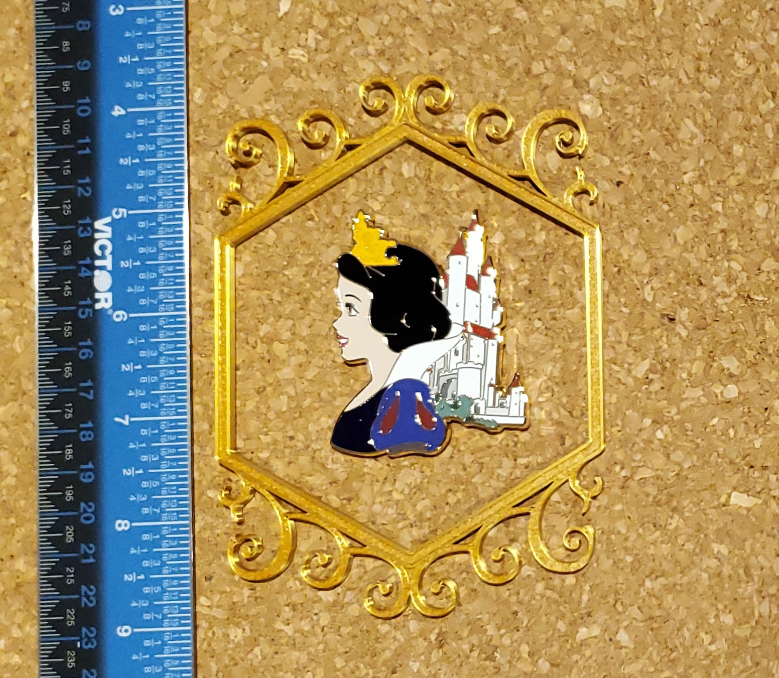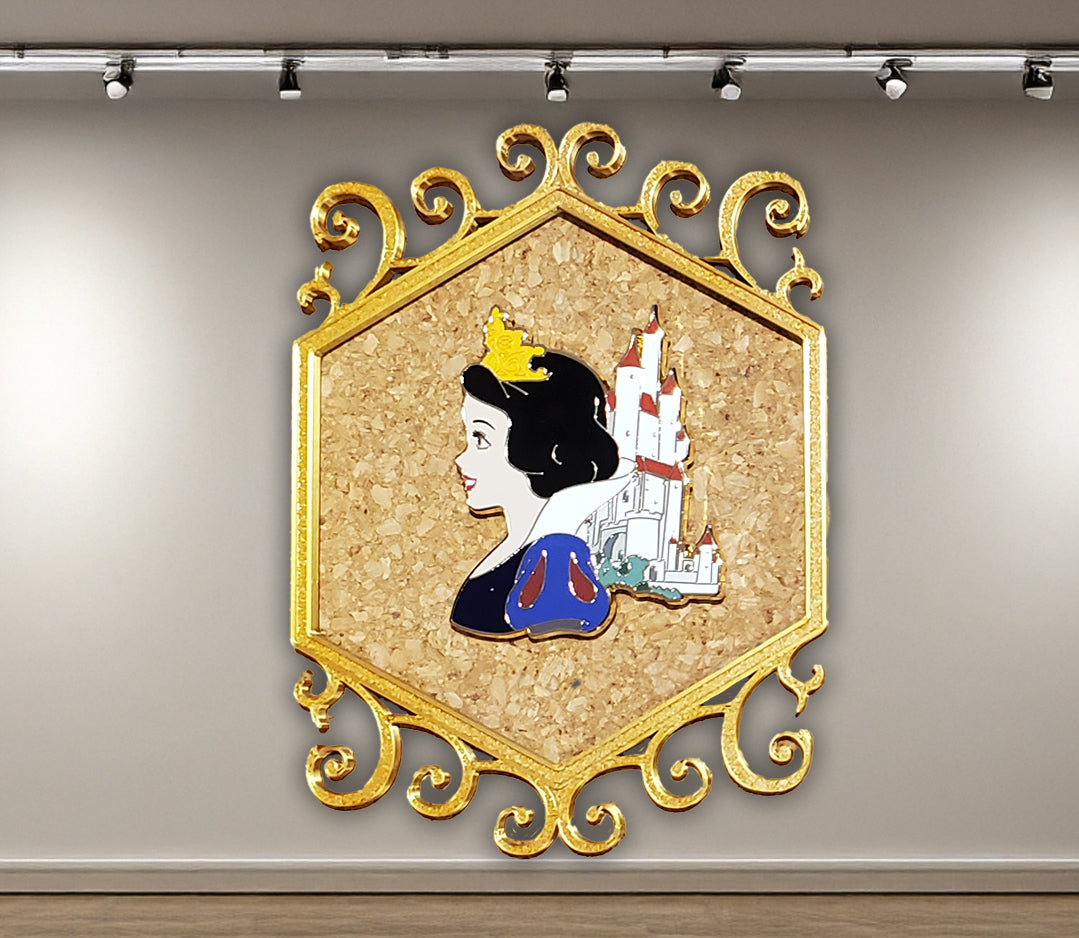 This stunning hexagonal portrait frame brings a touch of royal grandeur to your collection. With its ornate swirls and distinctive shape, it transforms your pin into the centerpiece of a fairytale-worthy display. Perfect for princess pins, castles, or any prized piece, the frame’s design balances elegance with a unique silhouette, making it a standout piece in the Enchanted Portrait Frames Collection.