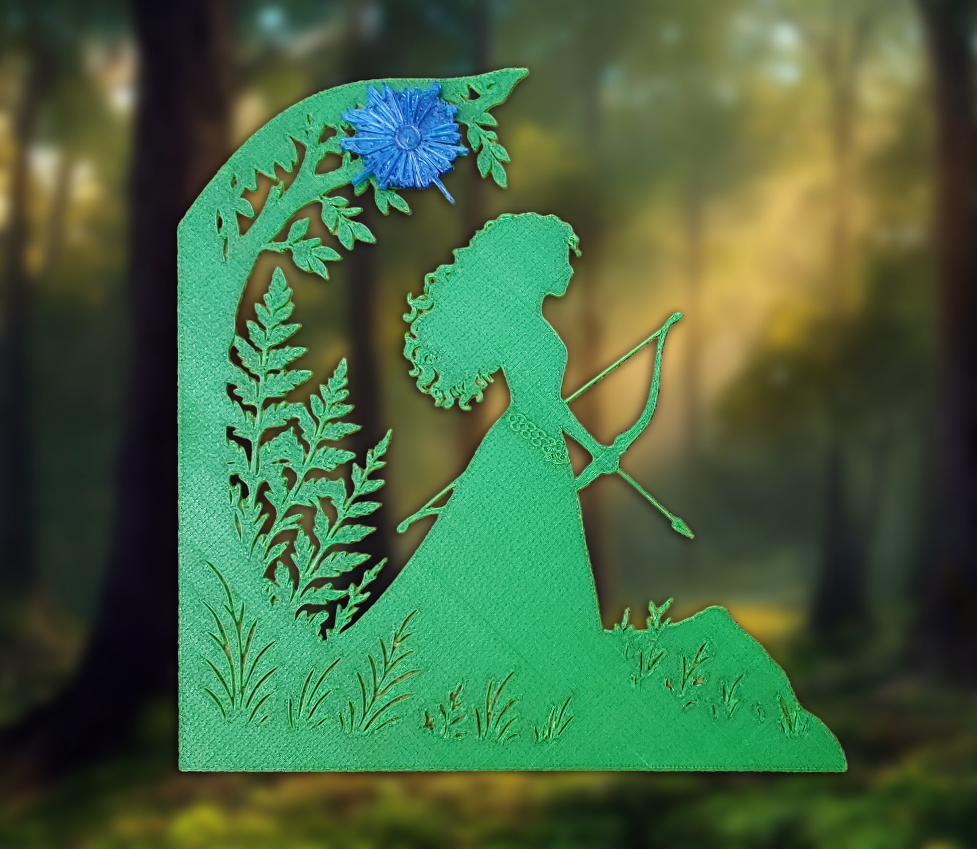 Bring the wild spirit of the Highlands to your collection with this Brave-inspired pin border featuring the fearless archer. Silhouetted in flowing detail, bow in hand, she stands among forest foliage, capturing the essence of her untamed courage and determination.